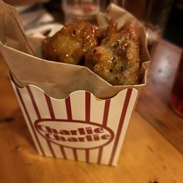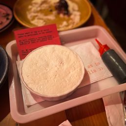 Such a great ambiance with creative, delicious flavors and energetic staff! Fluke ceviche (5/5) - The fluke just melted in your mouth, but what really set this dish apart was the dressing. A lot of the ceviches I've had were way too sour, but this one was so bright and fruity. We later learned that they import Hallabong oranges from Jeju, which explains why this dish was so vibrant! Popcorn chicken (3/5) - Tasted like popcorn chicken, nothing special but not bad. Mushroom bibimbap (4/5) - Love all the different types of mushrooms, a variety of earthy flavors and textures! The hen of the woods was marinated in soy sauce, giving it a flavor punch. Oxbone cream pasta (3/5) - Tasted like a carbonara, not really special. Crab drop (5/5) - Oh wow this dish was good. Rich umami from the crab; the broth was soothing, creamy, sweet, slightly spicy; the silken tofu was such a nice texture. All of this combined, you get a delectable dish that checks all the boxes! Potato nuggets (4.5/5) - The truffle mayonnaise is so fragrant and rich, so good! The only reason I docked by 0.5 was because the potato nuggets were a disappointing accompaniment compared to Hojokban's truffle potato pancakes. Toast roll (5/5) - Crispy on the outside, rich and creamy on the inside. The shrimp was minced in a way that it didn't feel exactly like a shrimp toast you'd expect, it was interesting. The dipping sauce was a perfect, delicious accompaniment. Seoul'sbury steak (4/5) - Clever name haha, it was a gourmet version of a Salisbury steak. B as in banana (5/5) - They give you some frosting to draw and you enter a competition. Winner each month gets free sake! Guess what we drew :) (disclaimer: we did not win) Charlie's deli bagel (4/5) - An ice cream version of the cream cheese and jelly bagel, very creative. Our server was so amazing and brought great energy and passion! The funny names, dessert drawing competition, and fun twists on dishes were delightful. The dishes were fun and creative and delicious. Love this place!